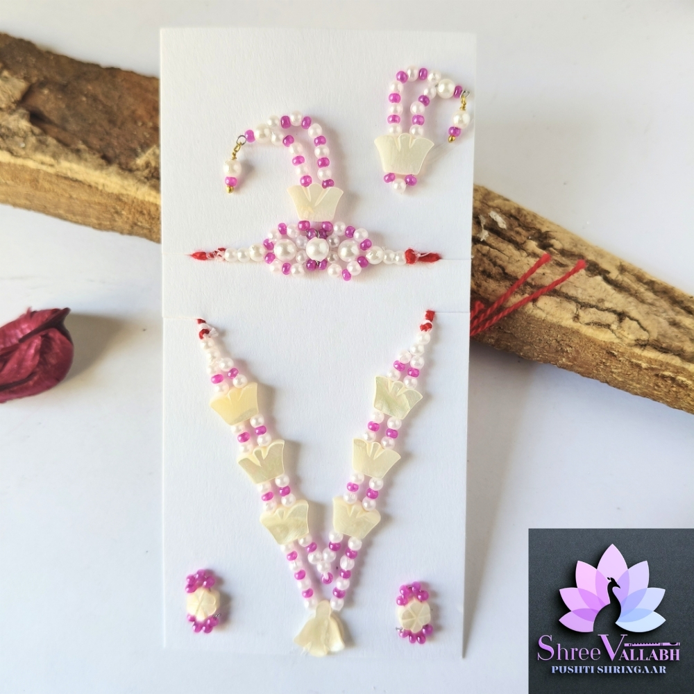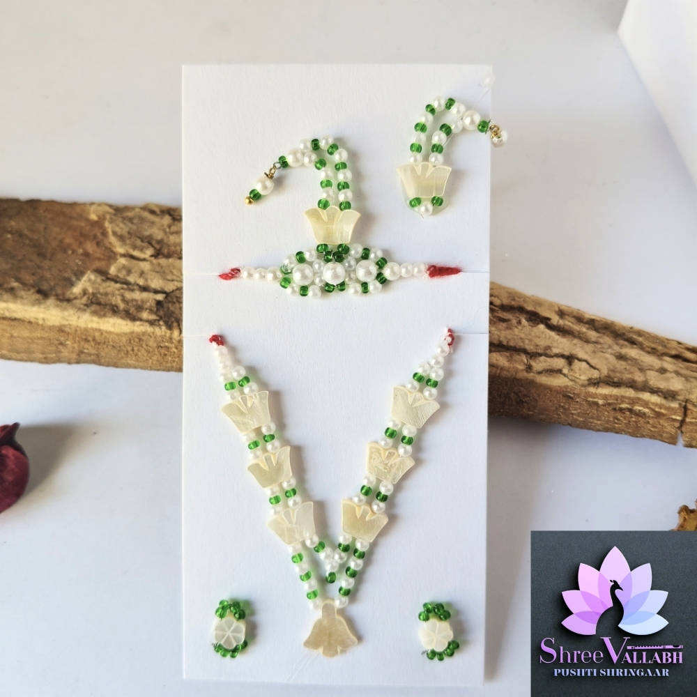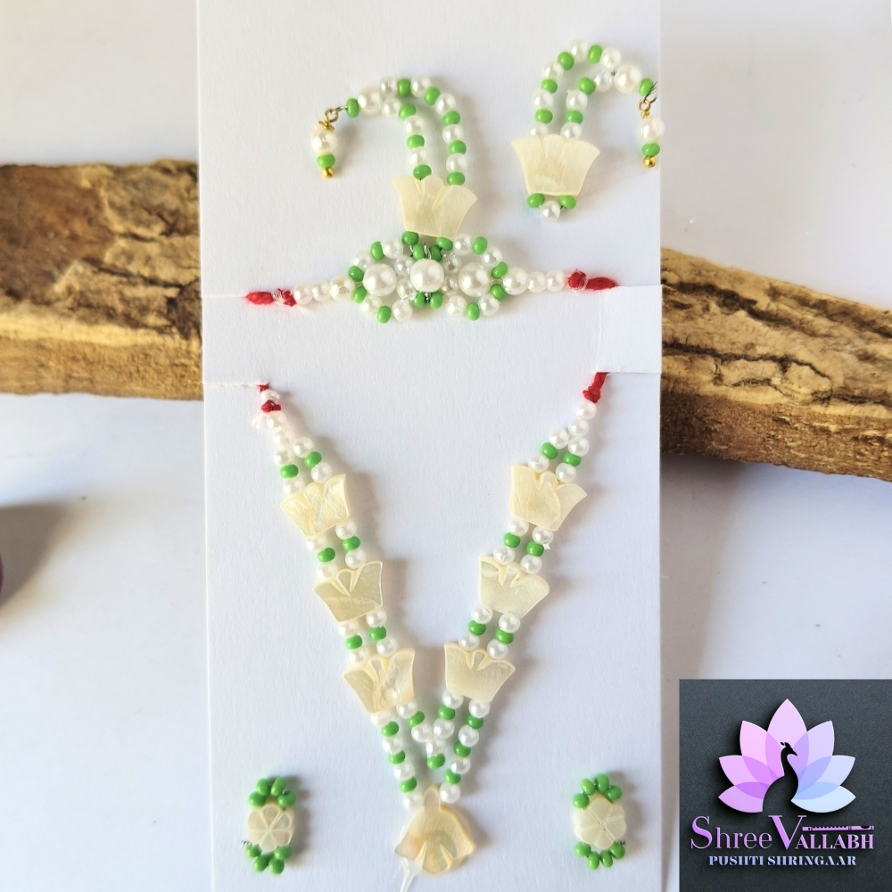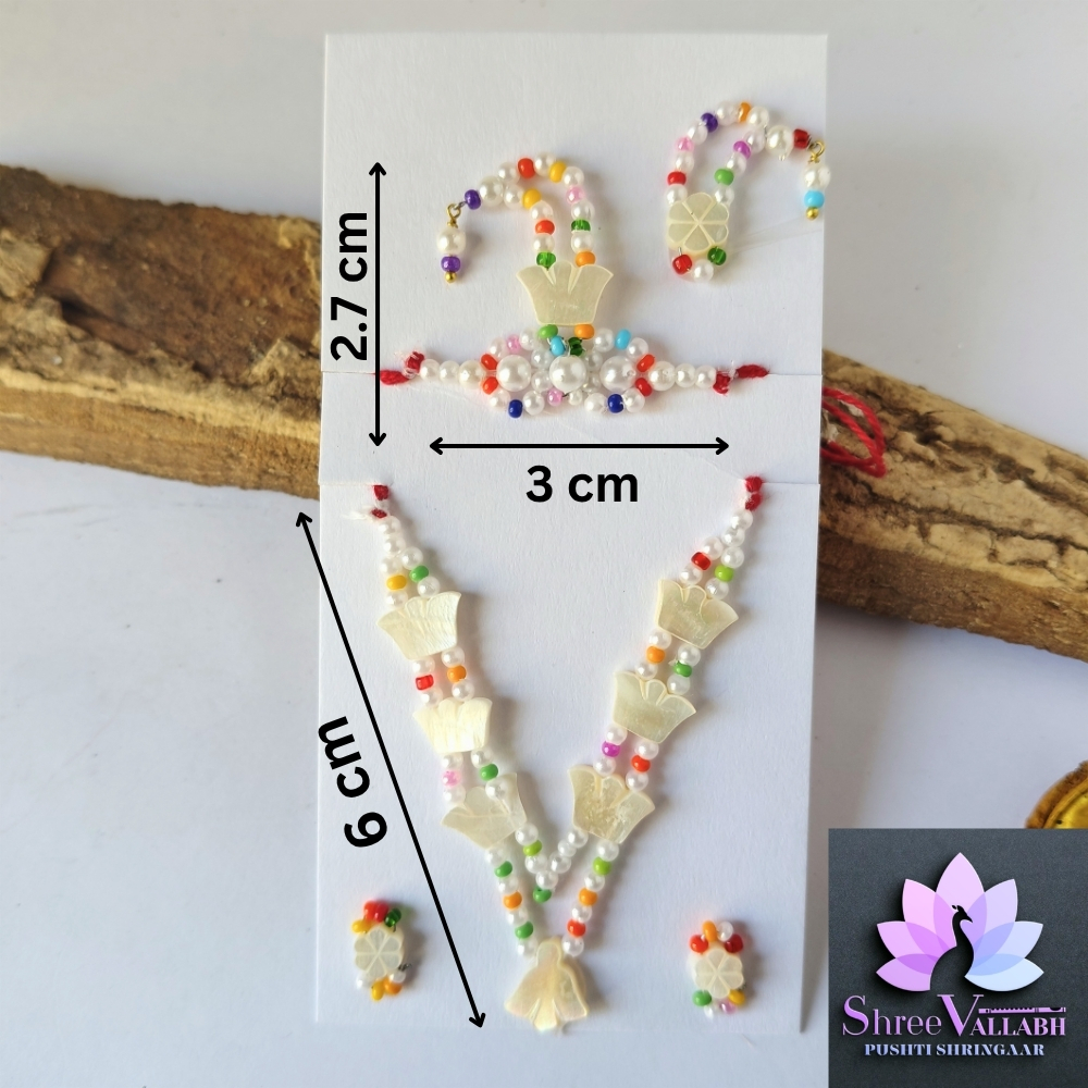 This CHHIP MALA SET is hand crafted by Shree Vallabh Pushti Shringaar and customization is available as par Vashnav’s requirement. We customise Alkavali size and color.