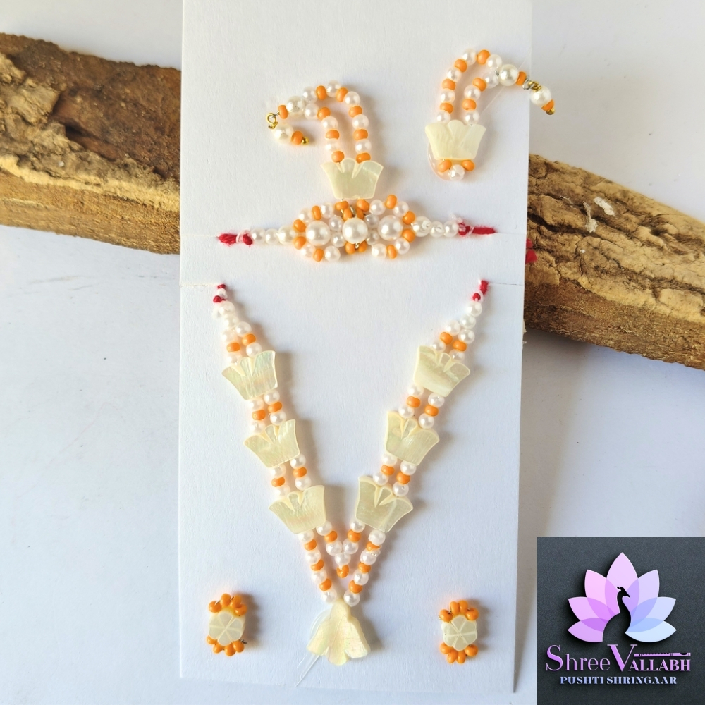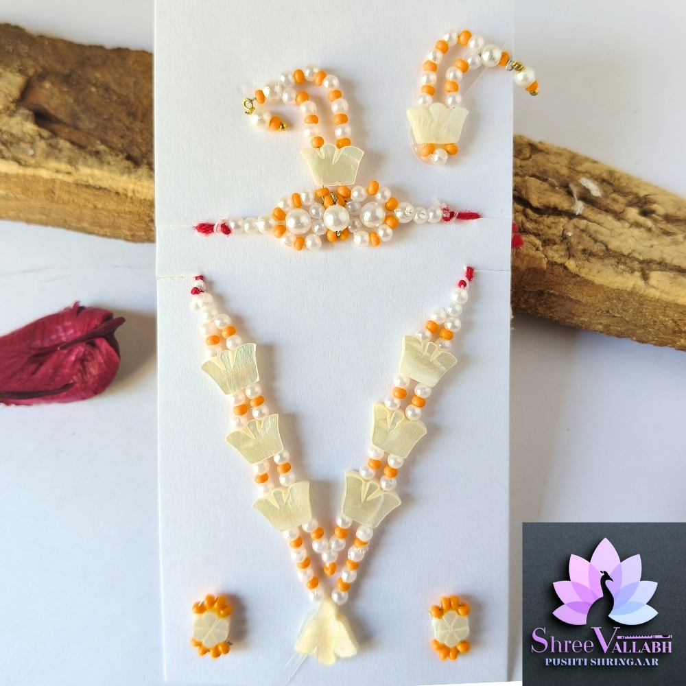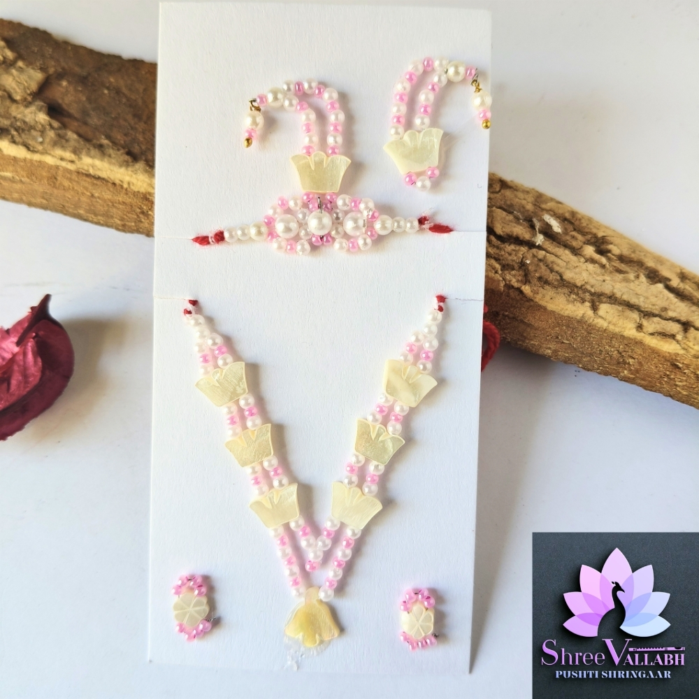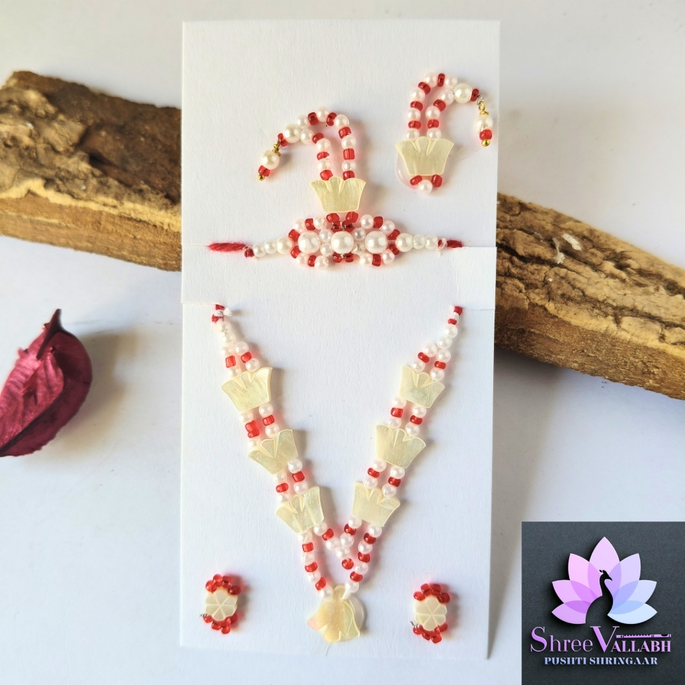 This CHHIP MALA SET is hand crafted by Shree Vallabh Pushti Shringaar and customization is available as par Vashnav’s requirement. We customise Alkavali size and color.