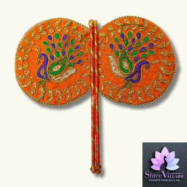 EMBROIDERY PANKHA is available in various color ,select the color you like for your prabhu. This pankha/vinzana is available in various size ,select the same as per your Prabhu’s size. Pankha/Vinzana is one of the shringar accessories of Laan/Bal Krishna gaadiji shringar and availble insatin lace and various print at center.