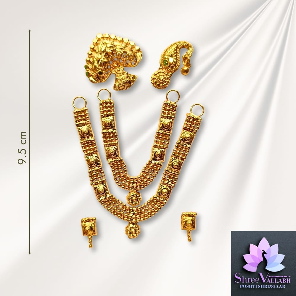 This GOLDEN HAAR SET  is Mastak Shringar for Lalan/Kanha/Laddu Gopal as per Pushti Shringar Pranalika. Check the description for size and length before your purchase as we may not issue any refund for size related issue and as per seva pranali. We sell only new and genuine product. We will give replacement or refund for any manufacturing defect only.