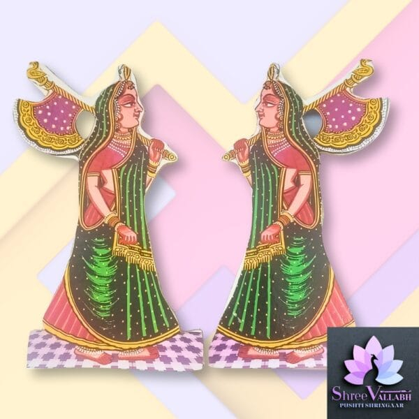 The GOPI DARAWAN SET is available in various size and print ,select the print you like for your prabhu. This set enhance the beauty of Gaadiji. This set consist of 08 Pair Gopi pairs and 01 Pair Darwan Pair MDF cut outs.