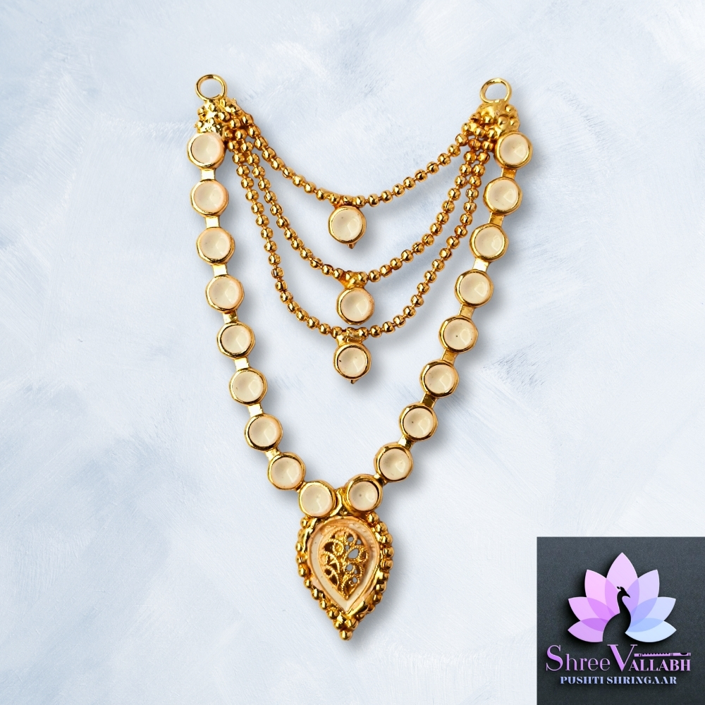 This MINAKARI HAAR is Mastak Shringar for Lalan/Kanha/Laddu Gopal as per Pushti Shringar Pranalika. Check the description for size and length before your purchase as we may not issue any refund for size related issue and as per seva pranali. We sell only new and genuine product. We will give replacement or refund for any manufacturing defect only.