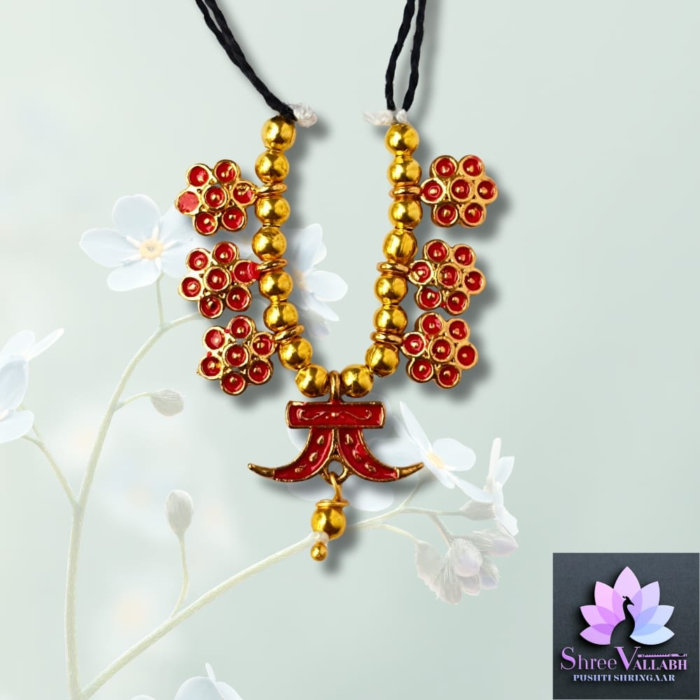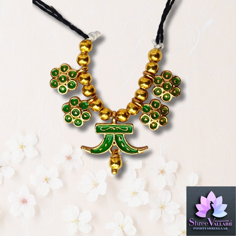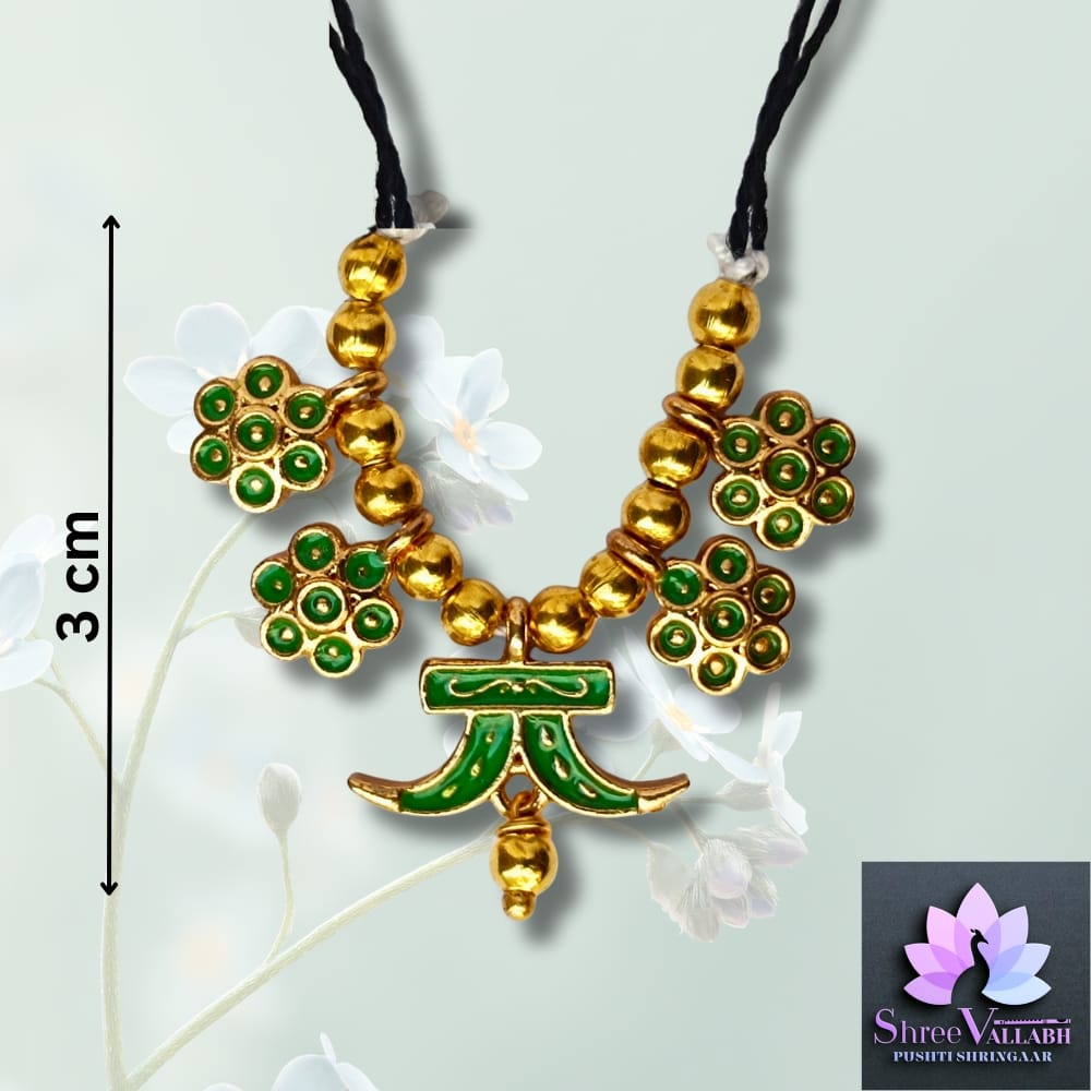 This MINAKARI HAAR is hand crafted by Shree Vallabh Pushti Shringaar and customization is available as par Vashnav’s requirement. We customise haar set size and color as per Vaishnav’s requirement. Please contact for any requirement.
