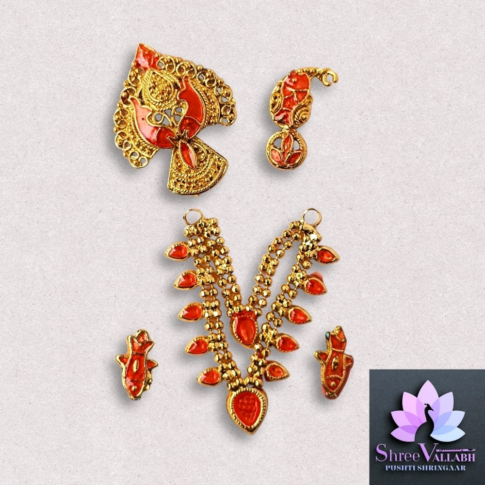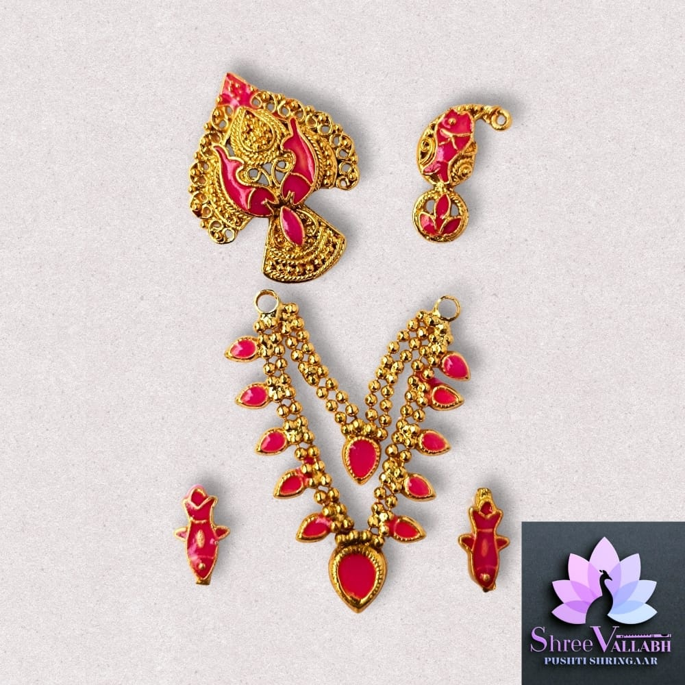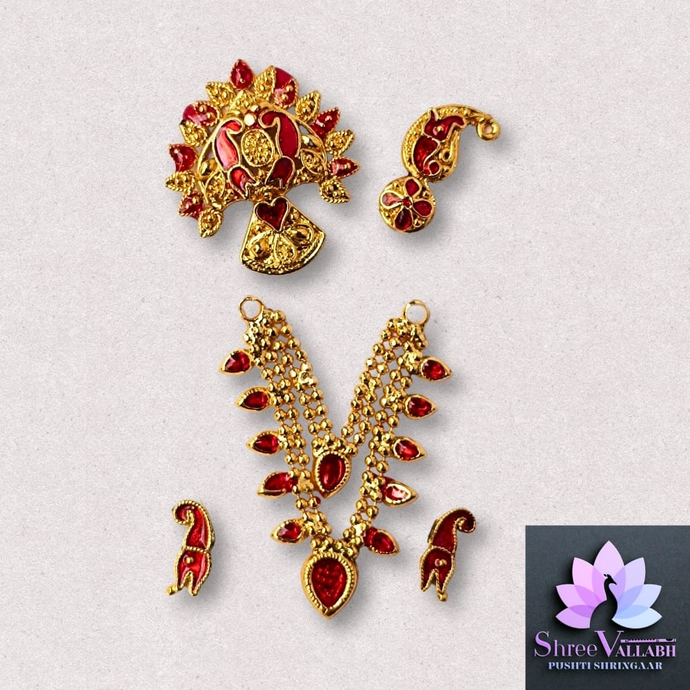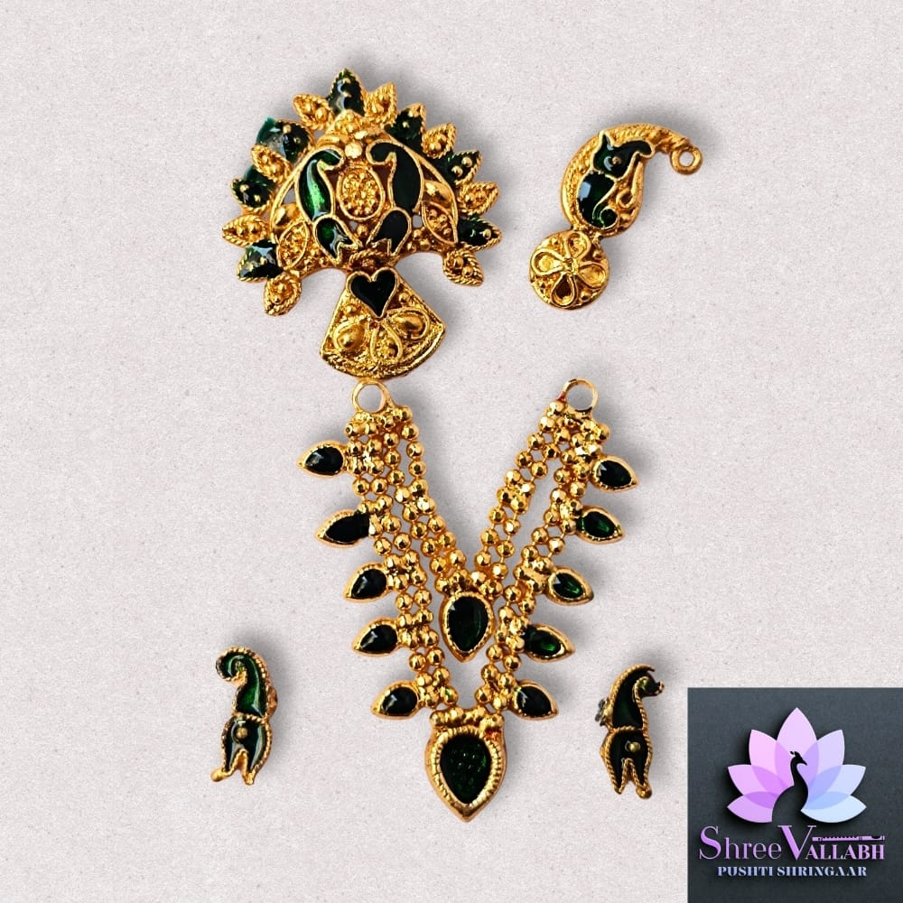 This MINAKARI HAAR SETÂ is Mastak Shringar for Lalan/Kanha/Laddu Gopal as per Pushti Shringar Pranalika. Check the description for size and length before your purchase as we may not issue any refund for size related issue and as per seva pranali. We sell only new and genuine product. We will give replacement or refund for any manufacturing defect only.