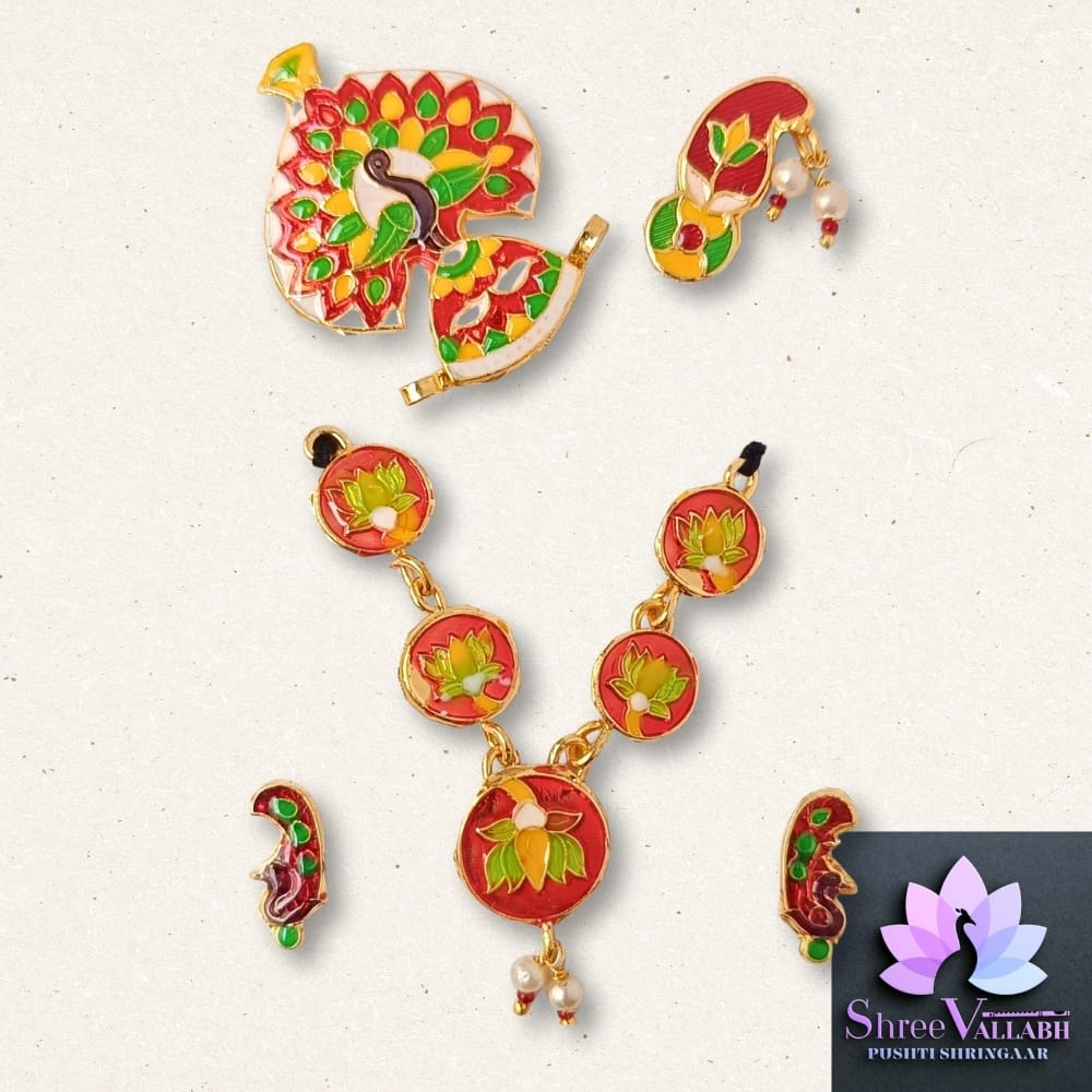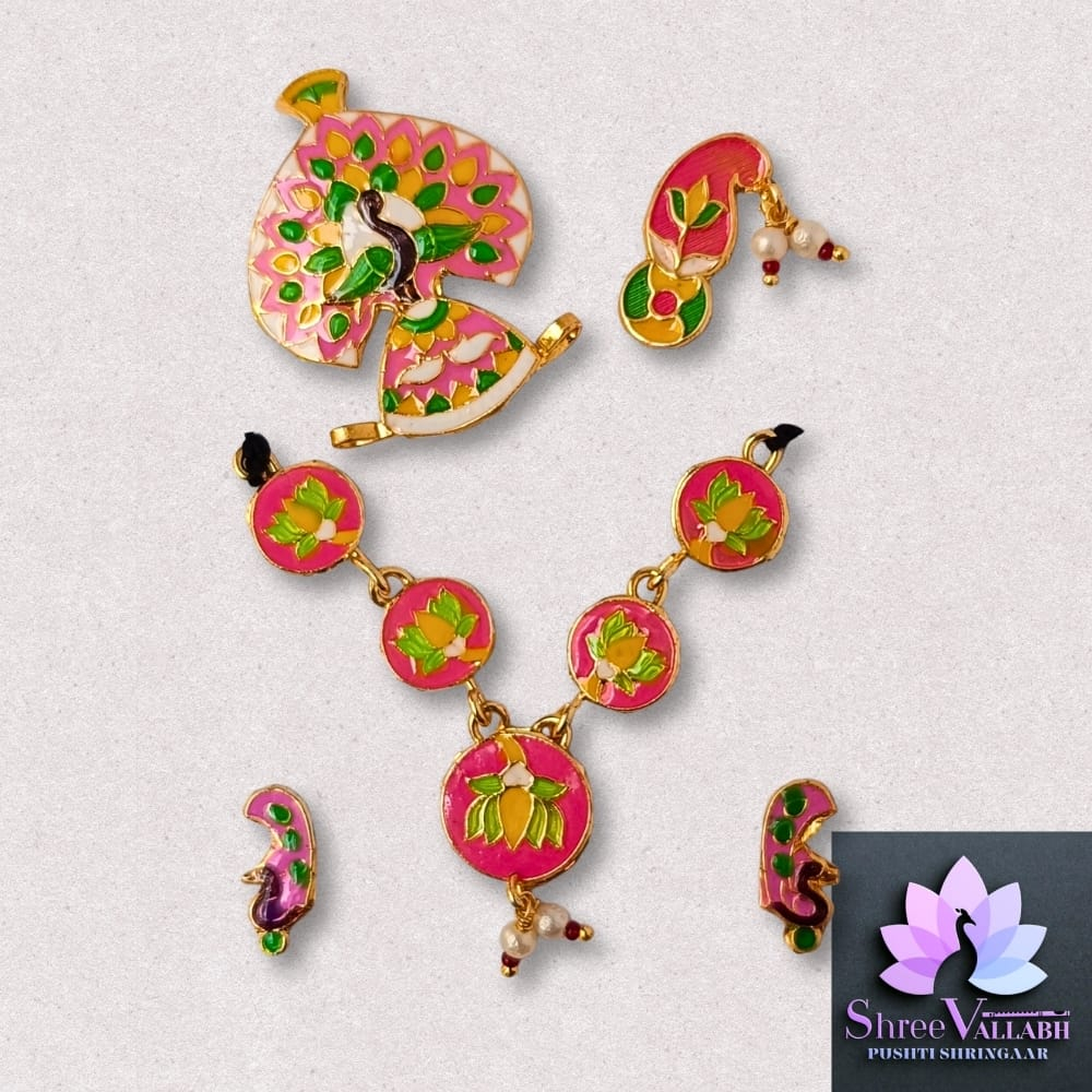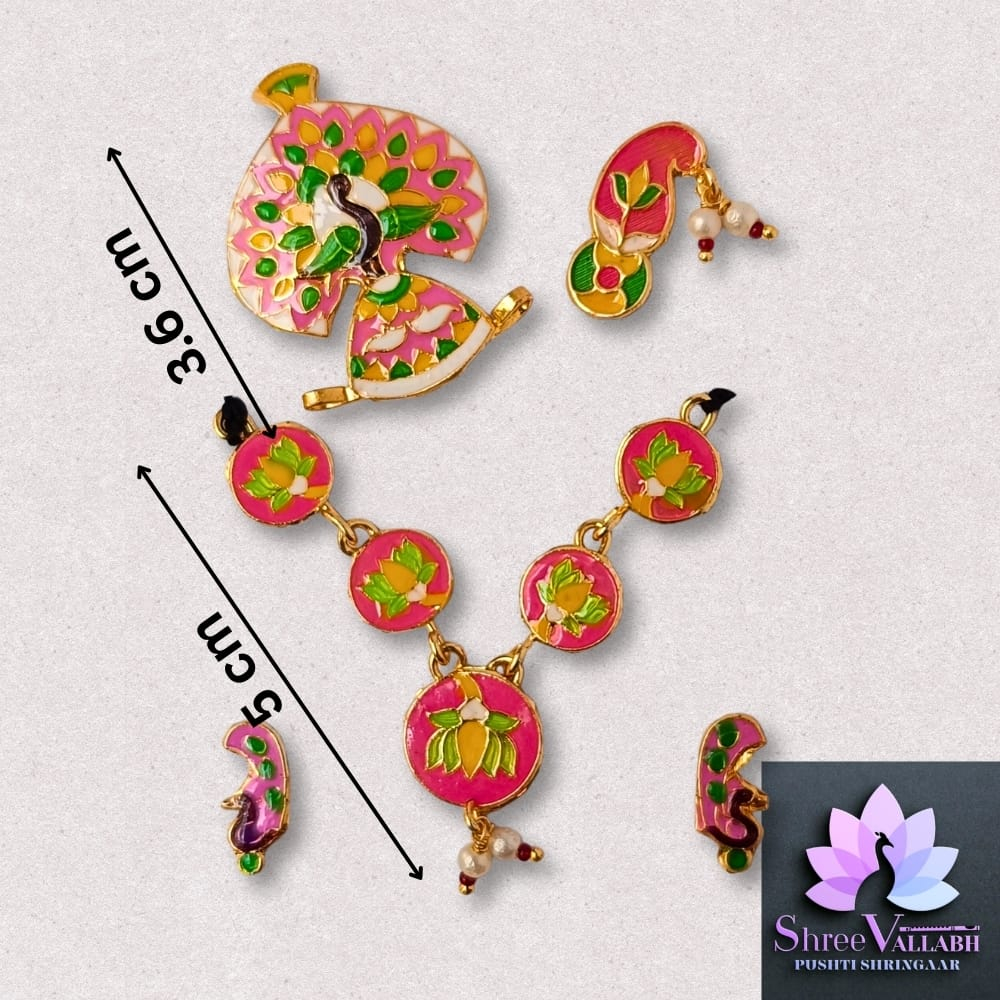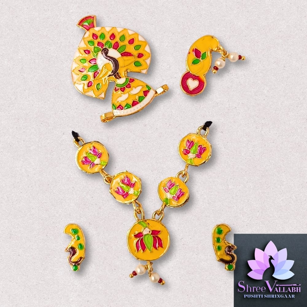 This MINAKARI HAAR SETÂ is Mastak Shringar for Lalan/Kanha/Laddu Gopal as per Pushti Shringar Pranalika. Check the description for size and length before your purchase as we may not issue any refund for size related issue and as per seva pranali. We sell only new and genuine product. We will give replacement or refund for any manufacturing defect only.