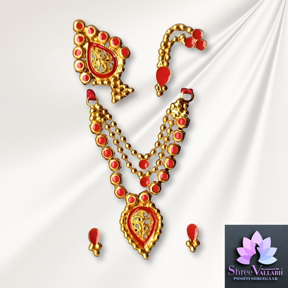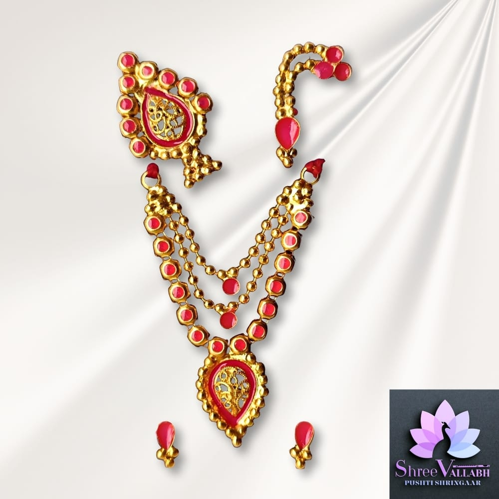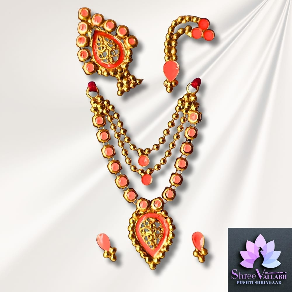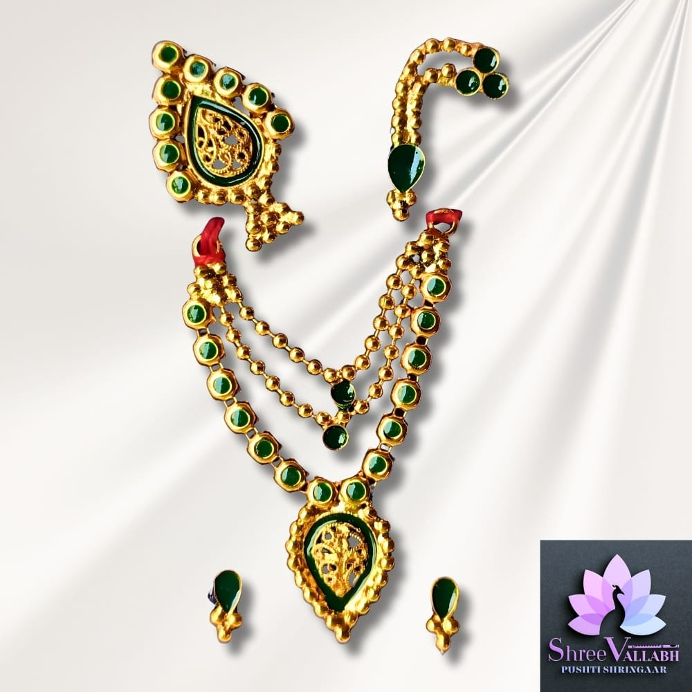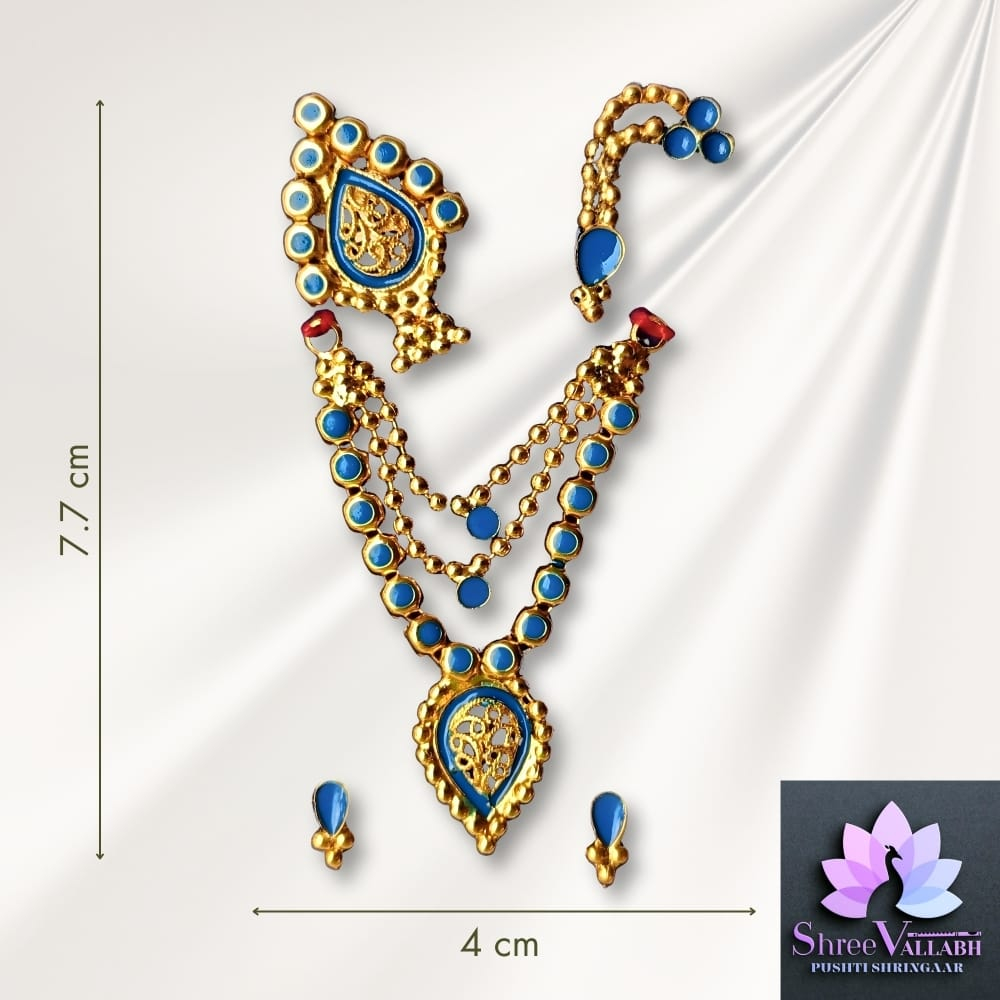 This MINAKARI HAAR SETÂ is Mastak Shringar for Lalan/Kanha/Laddu Gopal as per Pushti Shringar Pranalika. Check the description for size and length before your purchase as we may not issue any refund for size related issue and as per seva pranali. We sell only new and genuine product. We will give replacement or refund for any manufacturing defect only.