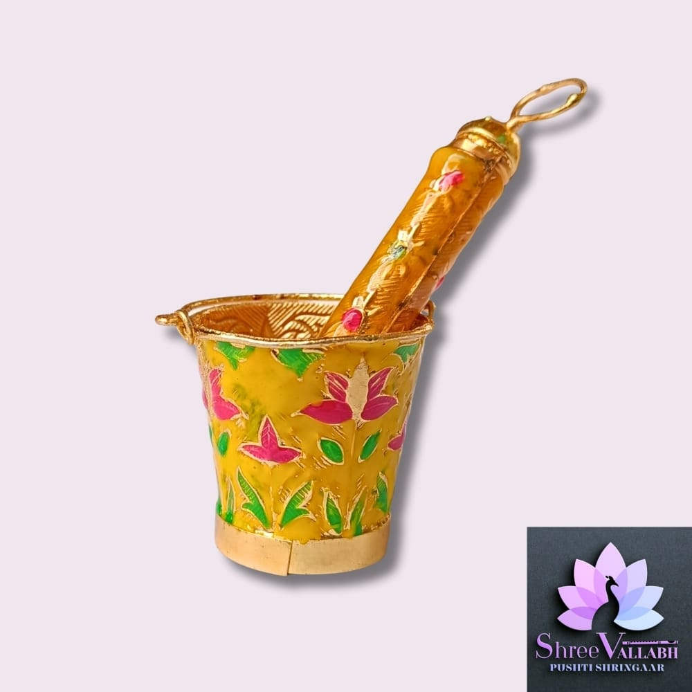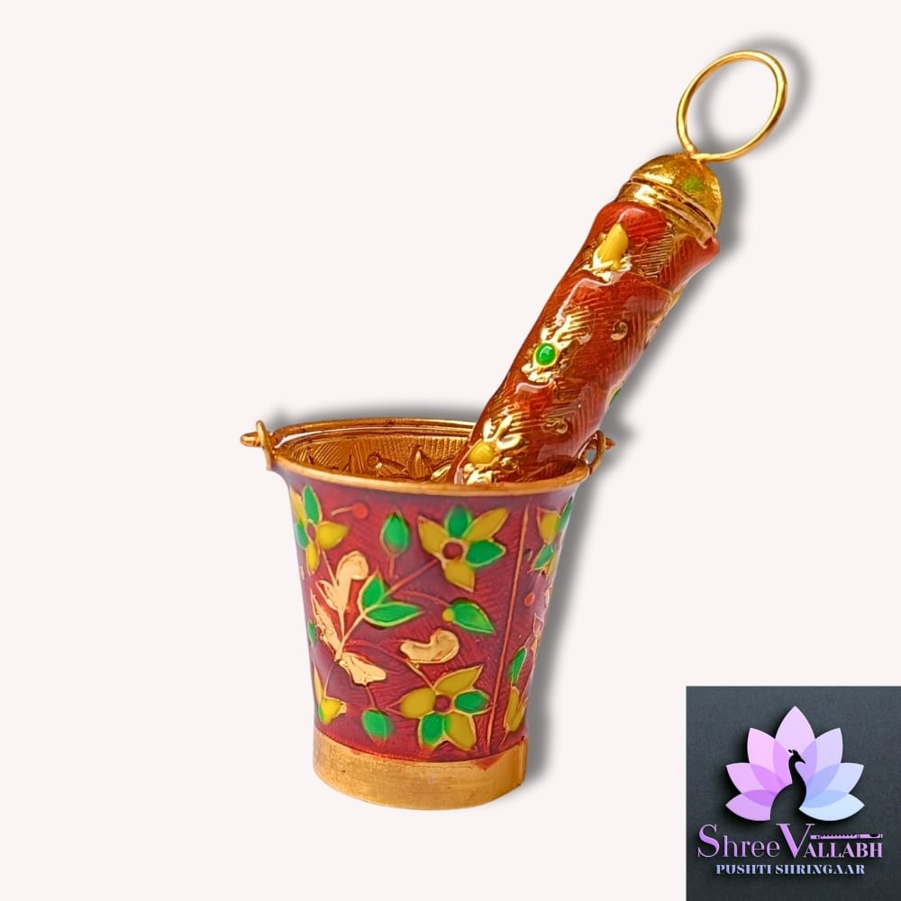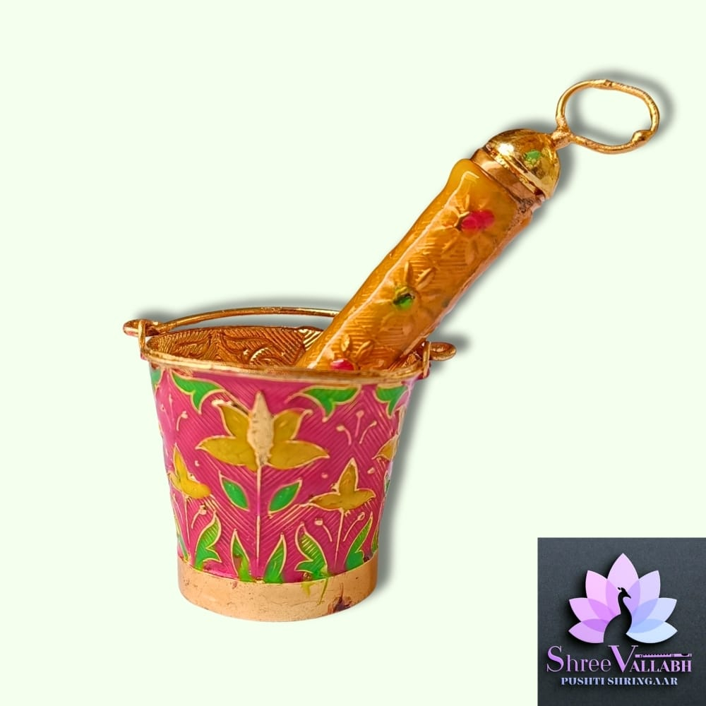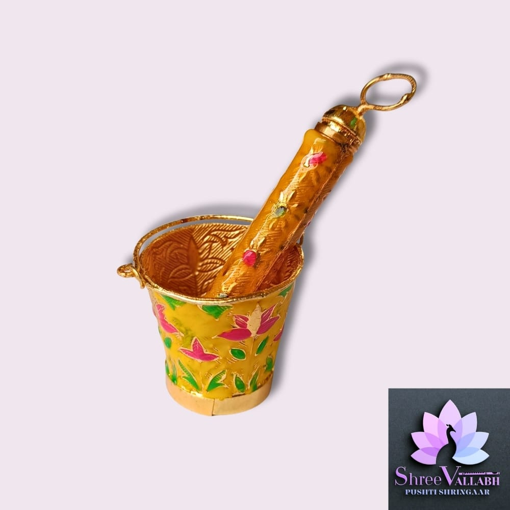 The MINAKARI BUCKET-PICHAKARI is available in various size and mold ,select the print you like for your prabhu. This set consist of 02 U metal toys and use for Laddu Gopal khel.