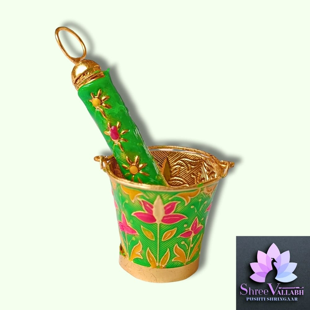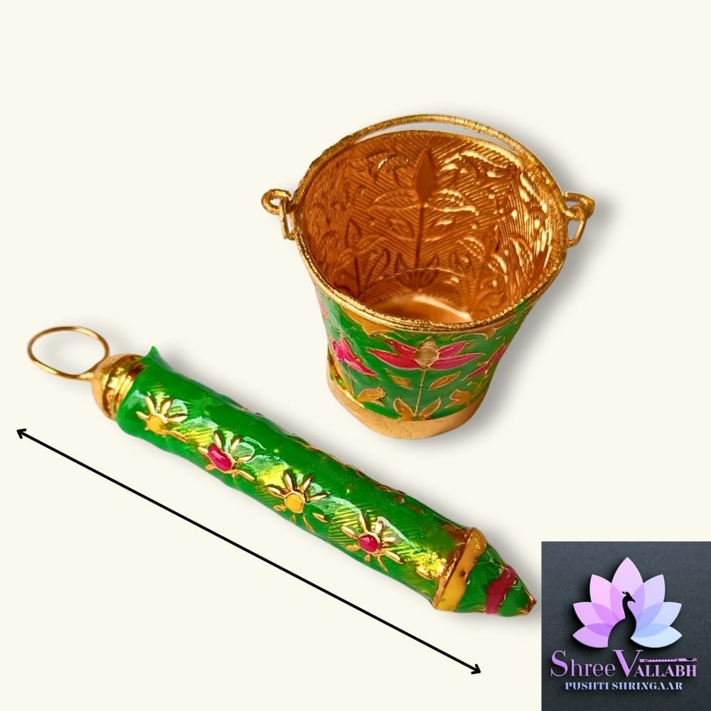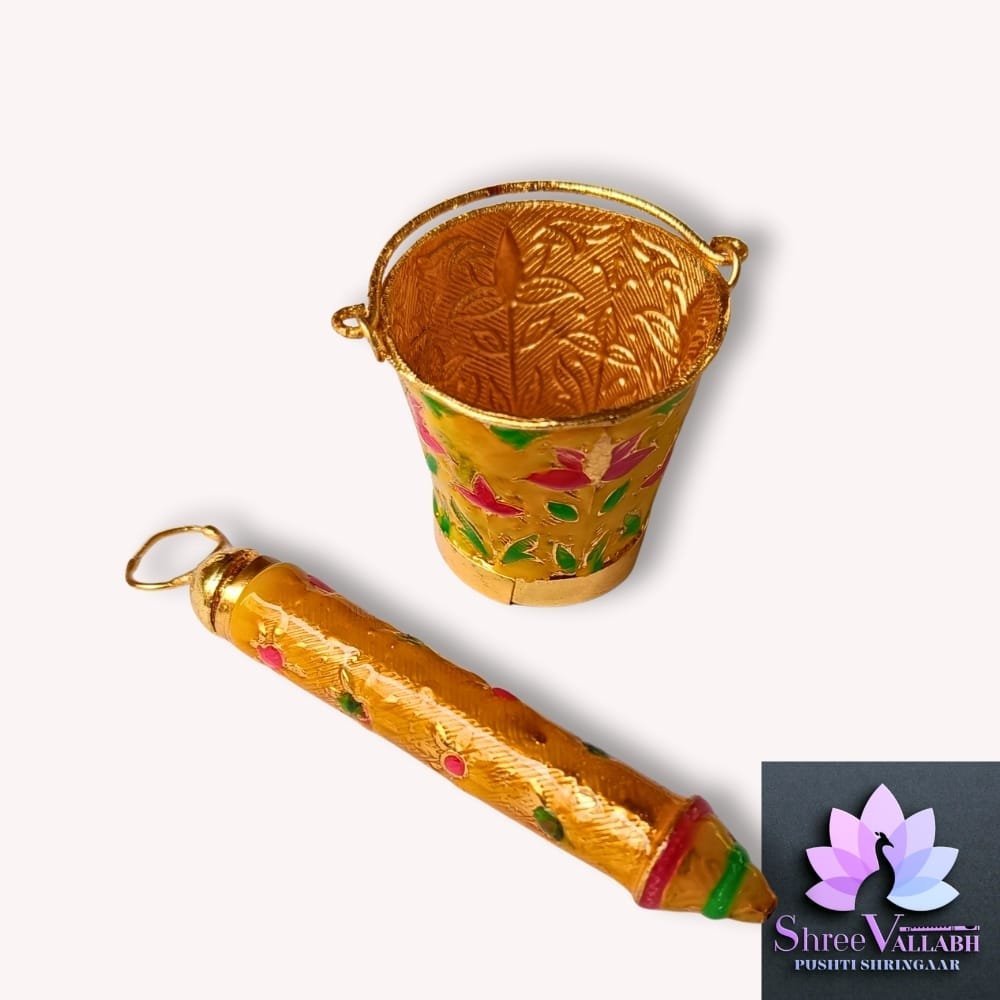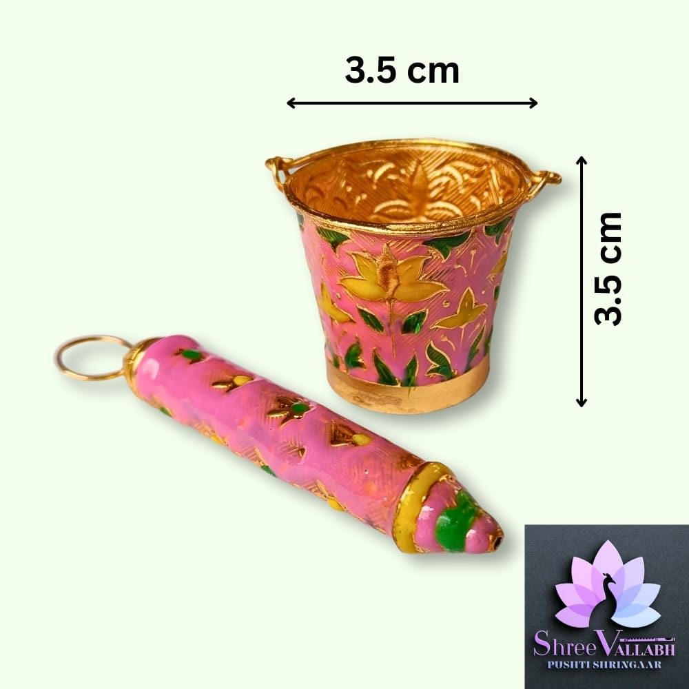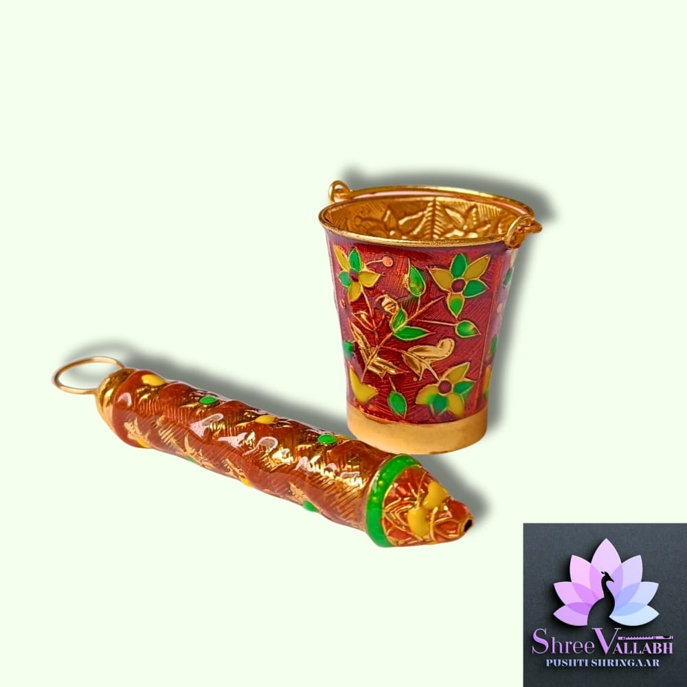 The MINAKARI BUCKET-PICHAKARI is available in various size and mold ,select the print you like for your prabhu. This set consist of 02 U metal toys and use for Laddu Gopal khel.