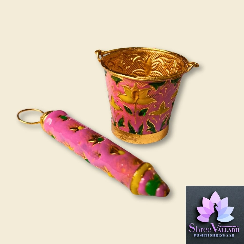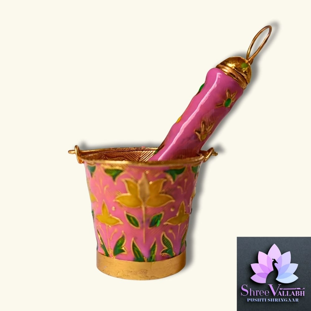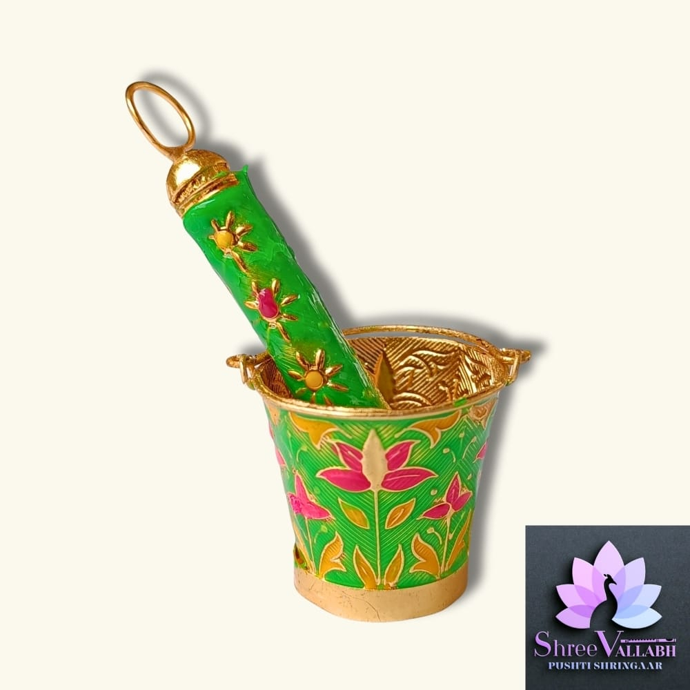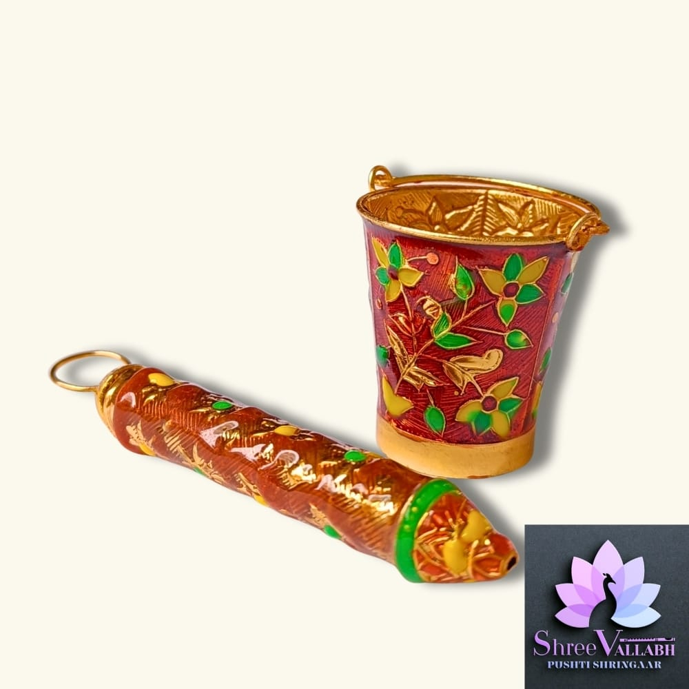 The MINAKARI BUCKET-PICHAKARI is available in various size and mold ,select the print you like for your prabhu. This set consist of 02 U metal toys and use for Laddu Gopal khel.