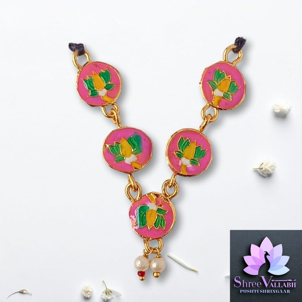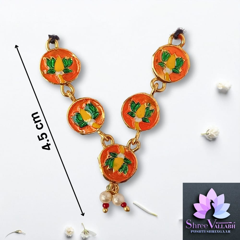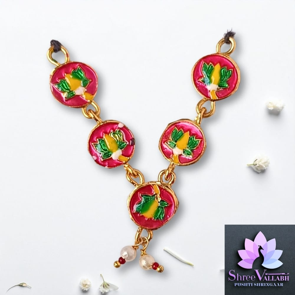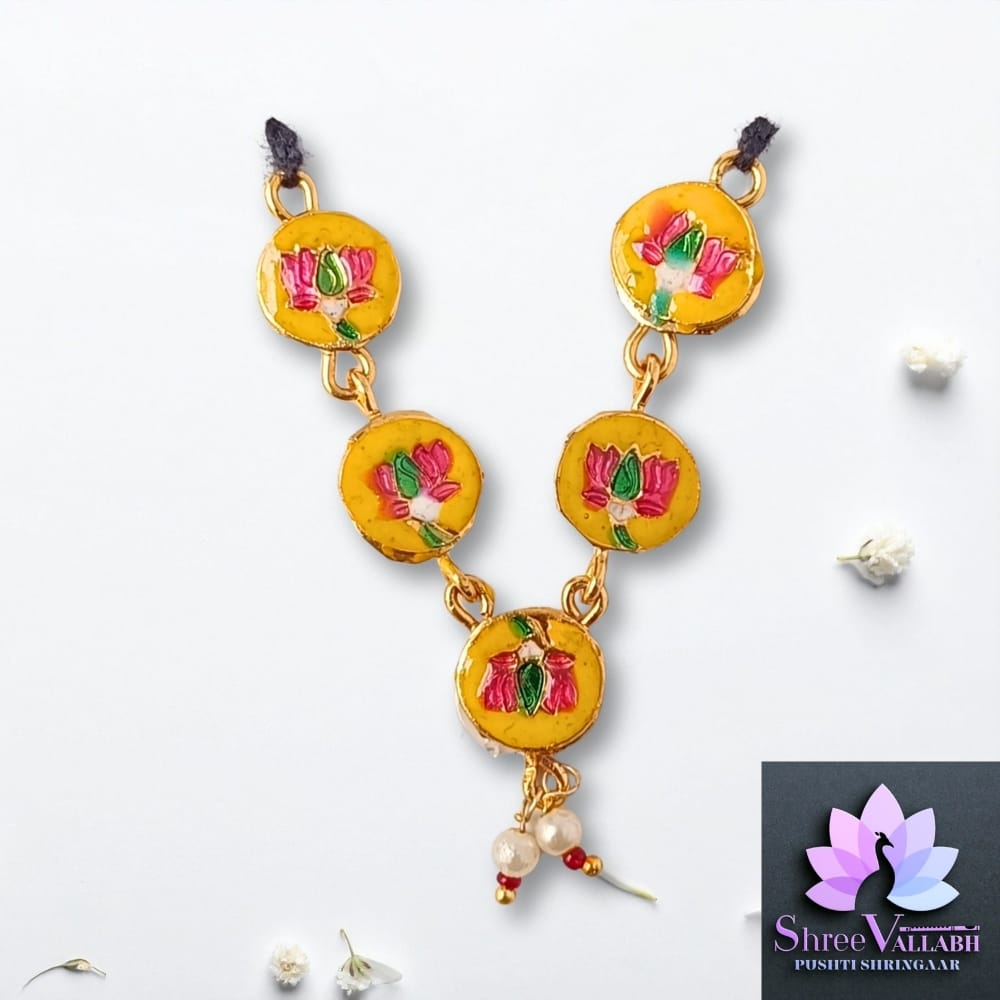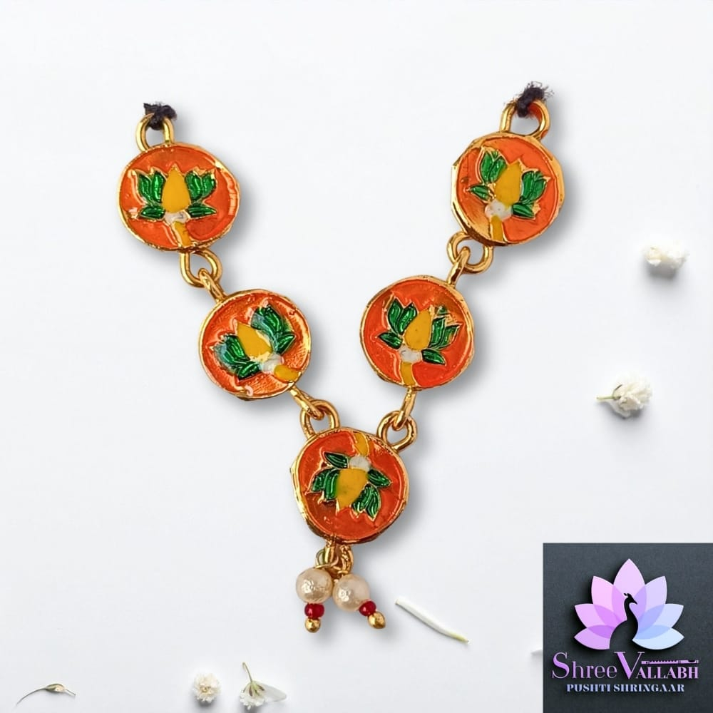 This MINAKARI MALA consist of metal with mina and used for Lalan/Kanha/Laddu Gopal shringar. Check the description for size and length before your purchase as we may not issue any refund for size related issue and as per seva pranali. We sell only new and genuine product. We will give replacement or refund for any manufacturing defect only.