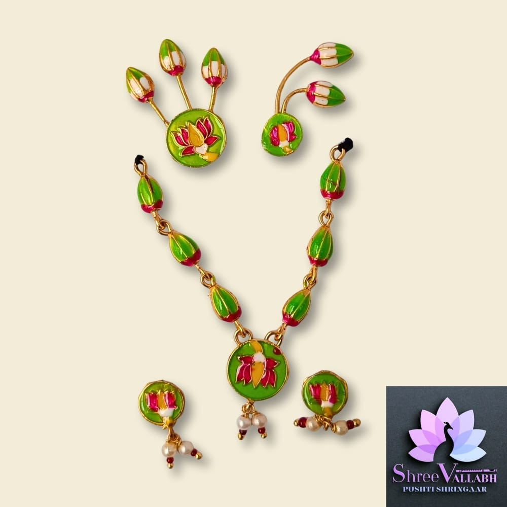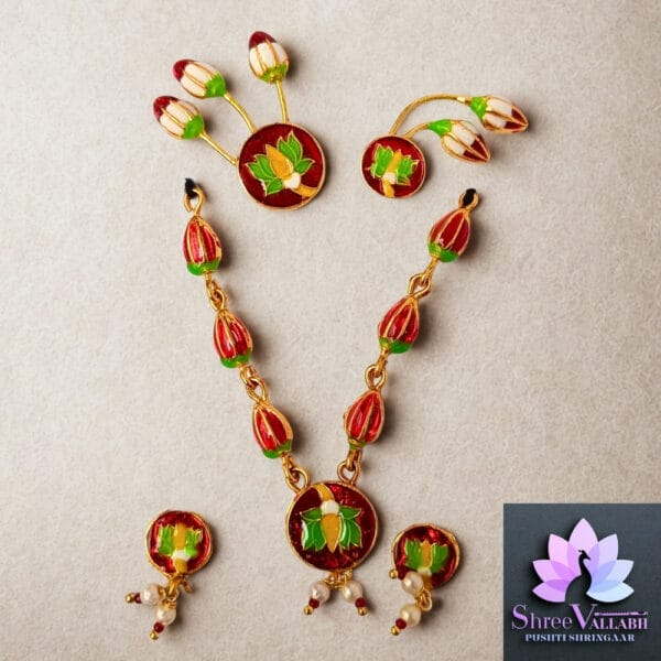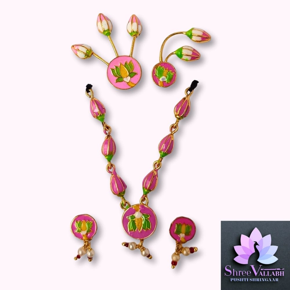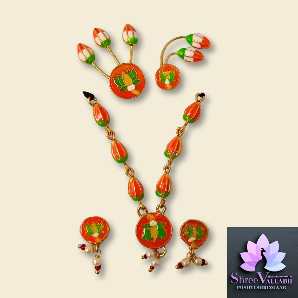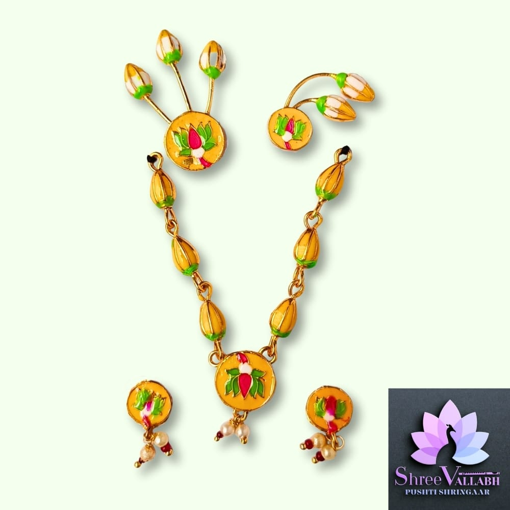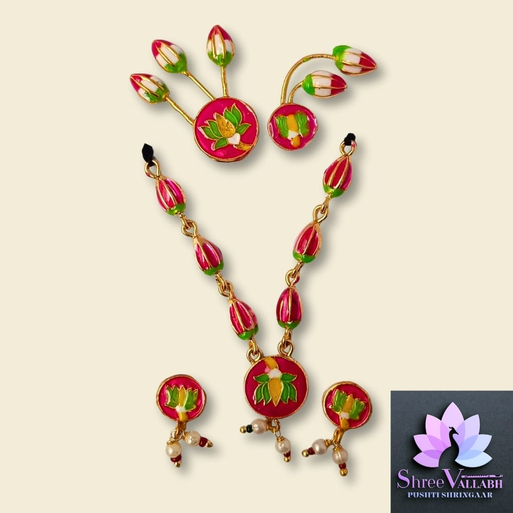 This MINAKARI MALA SET consist of metal with mina and used for Lalan/Kanha/Laddu Gopal shringar. Check the description for size and length before your purchase as we may not issue any refund for size related issue and as per seva pranali. We sell only new and genuine product. We will give replacement or refund for any manufacturing defect only.