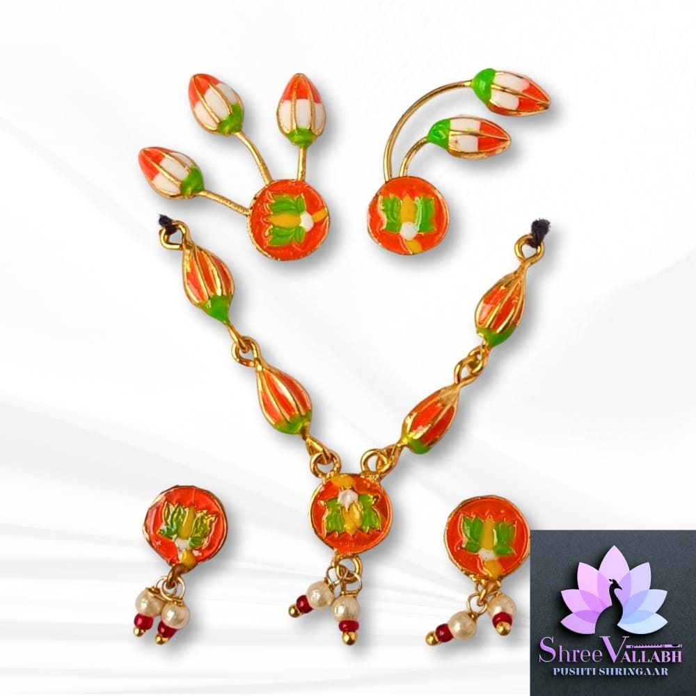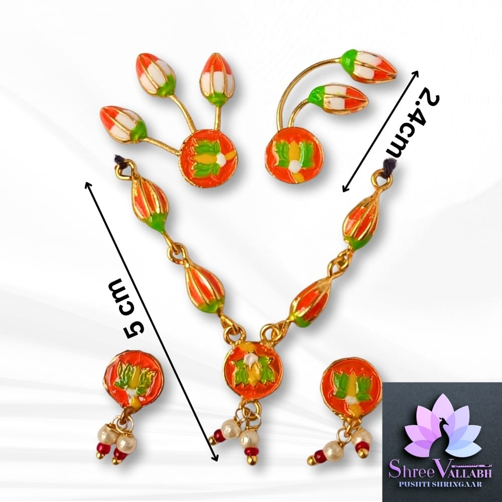 This MINAKARI MALA SET consist of metal with mina and used for Lalan/Kanha/Laddu Gopal shringar. Check the description for size and length before your purchase as we may not issue any refund for size related issue and as per seva pranali. We sell only new and genuine product. We will give replacement or refund for any manufacturing defect only.